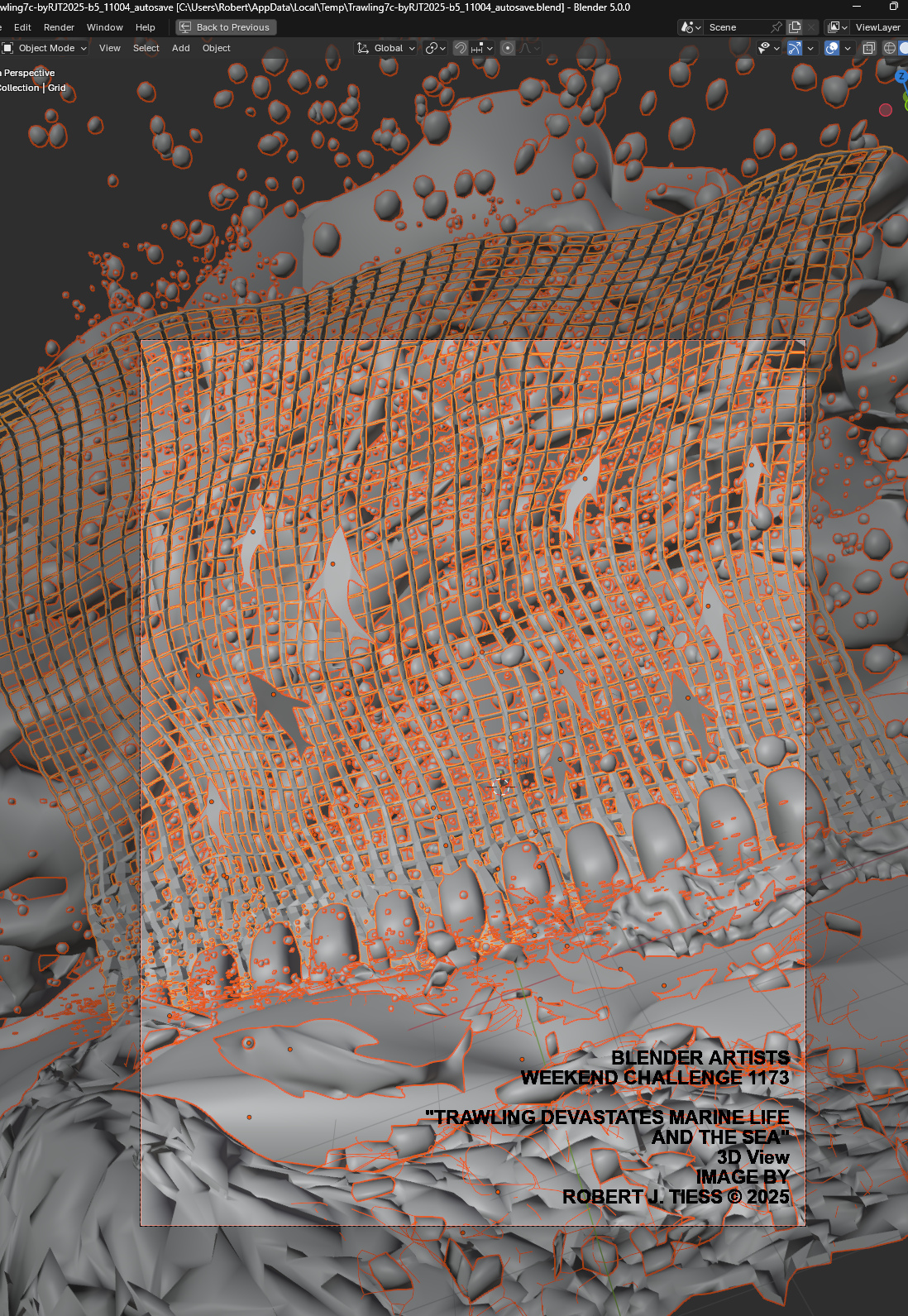 (weekend challenge entry; rendered in Cycles; "under the guardrail" was the challenge theme; title is a pun, playing on the phrase "scrubbed launch" (cancelled launch)